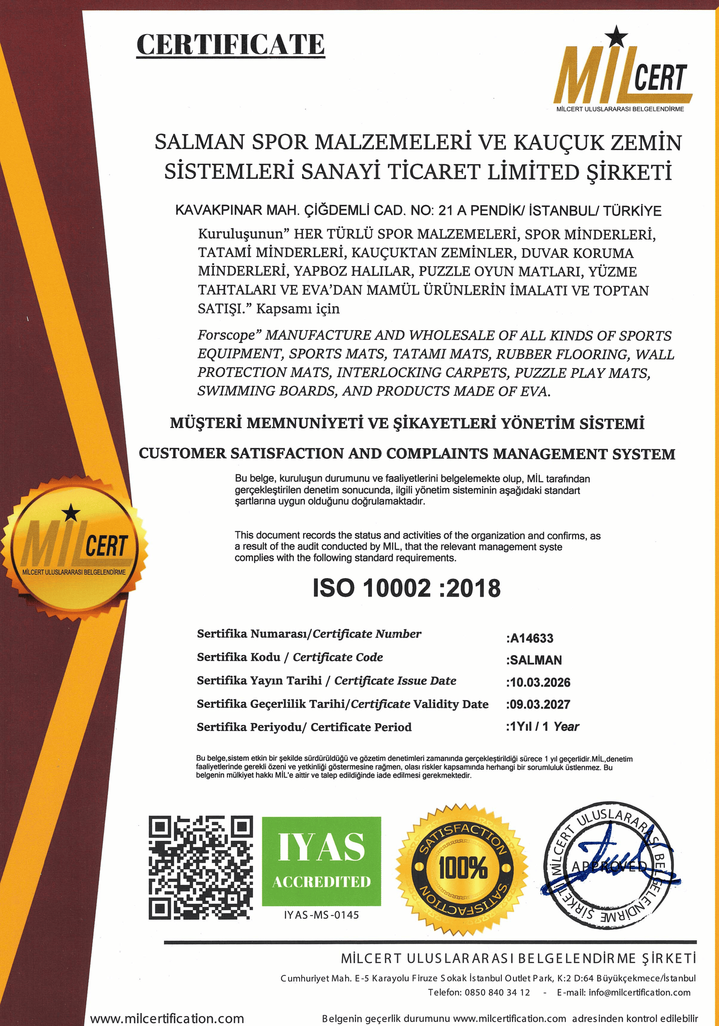 Sertifikalarımız